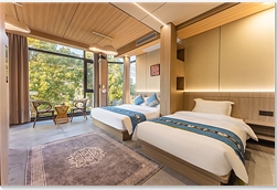 客房配有獨(dú)立衛(wèi)生間、電視、空調(diào)、無(wú)線WiFi,中央熱水器,24小時(shí)供應(yīng)熱水,床單被套一客一換。一次可接待25-30人住宿和用餐。